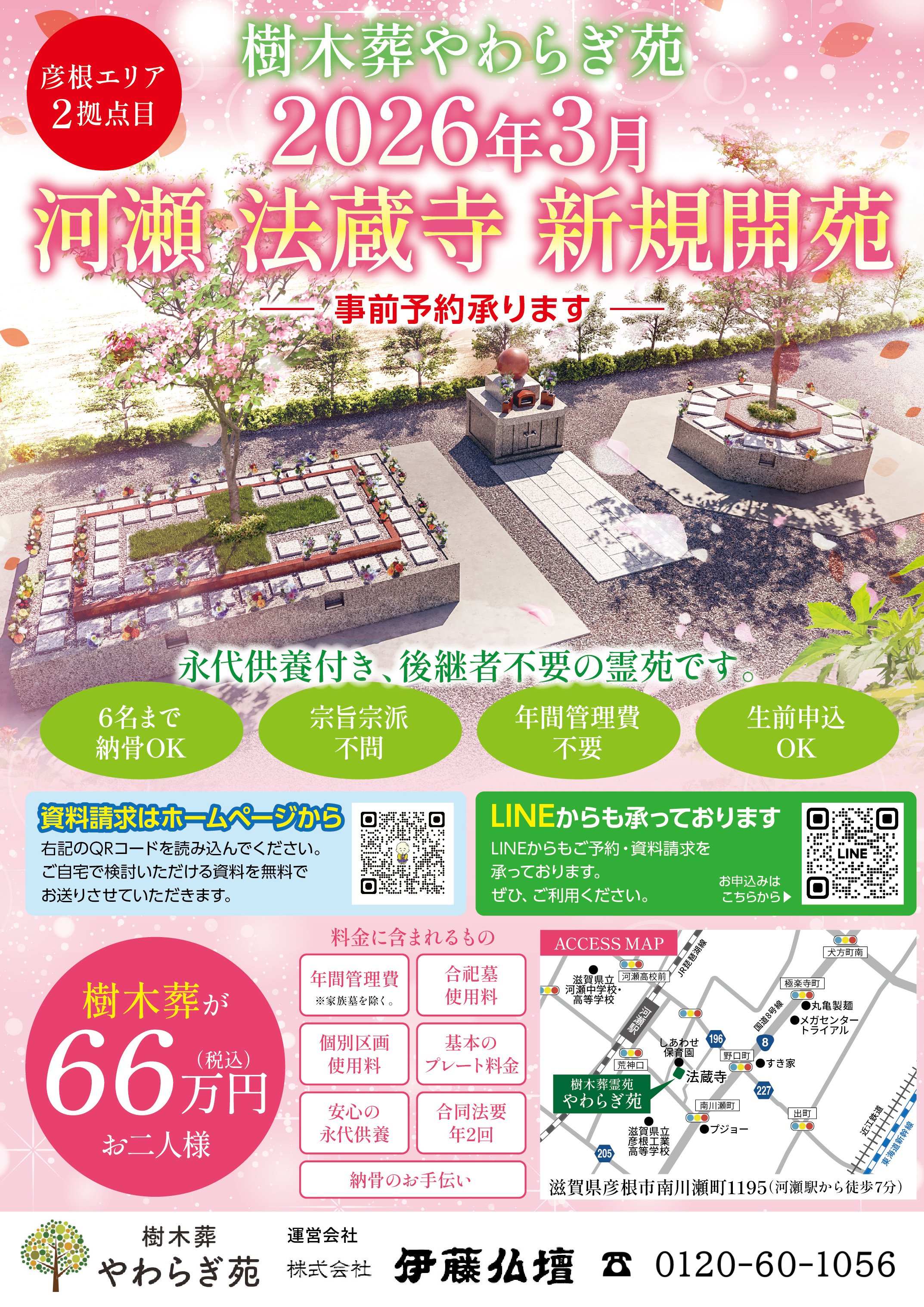 そんな弊社の樹木葬霊苑ですが、2026年3月彦根市河瀬地区に新たに開設することとなりました。